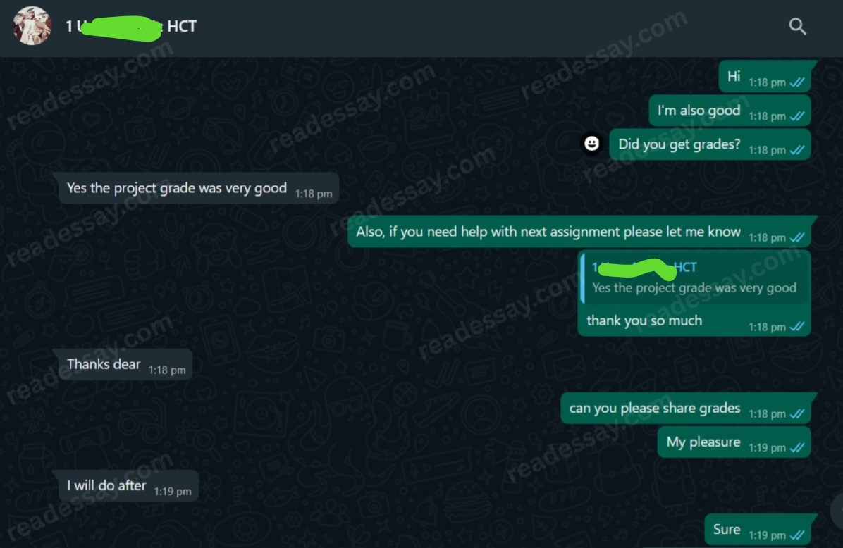 I used readessay’s Business Assignment services for the first time. My dissertation was expected in a month and I would never have got it done on schedule if it weren’t for Mr.Luke at readessay.com. He assured me that he would get my assignment done within 3 weeks and as promised, I received my assignment within the stipulated time.